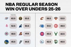 博彩公司为各队开出的新赛季胜场数指数 雷霆依旧被视为联盟第一
